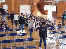 今日も、グリーンタイムの後に卒業式全体練習を行いました。今日は、式歌と花を保護者の方に渡しての退場の練習でしたが、ほぼ出来上がっています。式歌は、子どもたちの声がよく出ていて感動的です。また、花を保護者の方に渡すところは、当日は立派に成長した我が子を見て、きっと感動すると思います。明日の2、3時間目は、卒業式予行になります。
