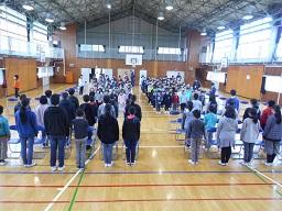 今日の2、3時間目に、卒業式予行を実施しました。卒業式当日と同じように、入場から退場までを流しましたが、欲を言えばきりがありませんが、よくできていました。当日は、緊張感の中にも暖かみのある式になればと考えています。