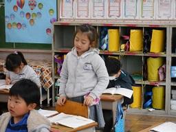 今日の3時間目に、1年生の国語の授業を見てきました。「だって、だってのおばあさん」という、1年生最後の物語文の読み取りをやっていました。いつもどおり、1年生は学習意欲が高く、真剣に取り組んでいました。易しいことを、より易しく教えることの難しさを感じる授業でした。そのような中、担任の先生は丁寧に教材文を使い子どもたちに考えさせていました。すごいです。