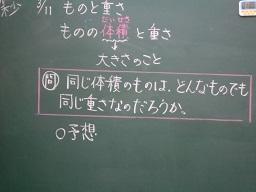 今日の3時間目に、3年生の理科も少しだけ見てきました。ちょうど教室に入ったときに、グループで物の体積と重さの関係を、電子てんびんを使って調べ、まとめをしているところでした。どのグループも、同じ体積でも物によって重さが違うことが理解できていました。もう少し早く行って、実験をしているところから見たかったです。