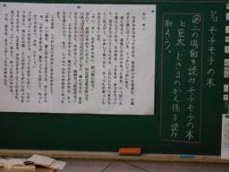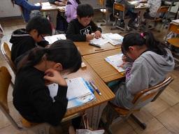 今日の3時間目に、3年生の国語の授業も見てきました。3年生最後の物語教材できっと保護者の方もご存知の「モチモチの木」でした。めあては「2の場面を読み、モチモチの木と豆太、じさまの関係を読み取ろう」でした。個人で考え、その後友だちと意見交流をして、発表しながらまとめていくというスムーズな流れでした。その中で、わからない言葉があればすぐ国語辞書を引く、ふりかえりたいときは前時の学習で作った模造紙の教材文を見る、さらに動作化を入れるなど、子どもたちが教材文に引き込まれていく工夫がいろいろされているすごい授業でした。