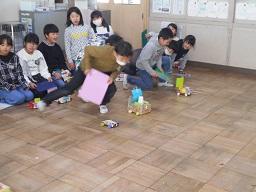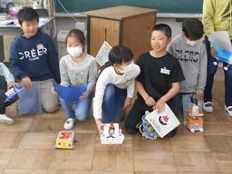 今日の朝、あいさつをしながら全教室を歩いているとき、4年生の教室で今日楽しい授業は何か聞いてみると、図工という答えが返ってきたので、3時間目の図工の授業を見てきました。「ゴーゴードリームカー」づくりということで、自分がもってきたいろいろな材料を使って、思い思いの夢の車を仕上げていました。もう最後の時間のようで、数名の仕上がるのを待って、実際に走らせて楽しんでいました。どの車も、とても工夫されていて、まさに夢の車という感じでした。
