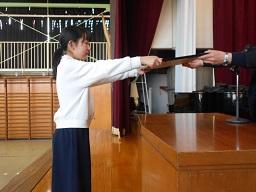 予行終了後に、6年生の「篤行・善行少年表彰」「ライオンズクラブ善行児童表彰」「体育優良児童表彰」を行いました。6年間の小学校生活を、がんばってきた成果だと思います。