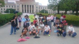 事故渋滞で、50分遅れで国立科学博物館に到着して、活動班ごとに見学を始めたところです。全員元気で、どの班も、楽しそうに見学をしています。天気は、小雨です。