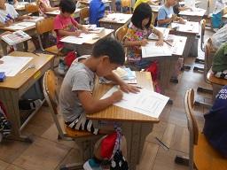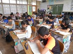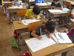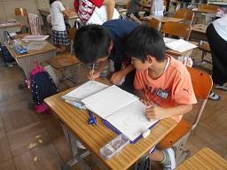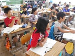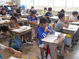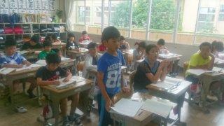 今日の4時間目に、4年生の算数の授業も見てきました。力だめしの問題を解いていましたが、子ども同士が学び合っている場面がいろんなところで見られるよい授業でした。2時間目にプールに入った後ですが、3時間目の理科、そして4時間目の算数とよくがんばっていました。