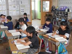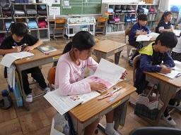 今日の4時間目に、3年生の国語の授業も見てきました。ありがとうの気持ちを伝えるための手紙の清書を行っていました。真剣に書いている子、終わって読み返している子、となりの席の子と交換して読み合っている子と進み具合によっていろいろでしたが、みんな真剣に授業に取り組んでいました。明日か明後日に投函することになっています。とてもよい学習だと思いました。