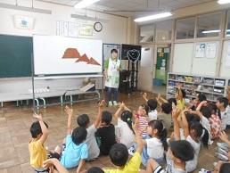 今日の2時間目の1年生の国語の時間に、お話ボランティアさんが入って授業を実施しました。これは、この後の読書教材に興味を持って取り組めるようにするために取り入れたものです。今日は「いろいろ いちご」の話をボードシアターで子どもたちに聞かせてくれました。子どもたちは、とても楽しくお話を聞くことができました。
