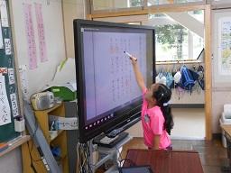 今日の1時間目に、1年生の国語の授業を見てきました。「たからものを、みんなにおしえよう」というねらいで、お話の中の宝物を見つけて発表する授業を実施していました。タブレットや電子黒板を使い、とても工夫されている授業でした。