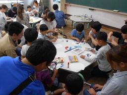 今日の4時間目に、1年生が親子ふれあい活動で秋祭り用のうちわづくりを行いました。それぞれいろいろな飾るための材料を用意し、自分だけのうちわを完成させようと親子でがんばっていました。このうちわでわくわく発表会の時に、秋祭りを実施するのが今からとても楽しみです。