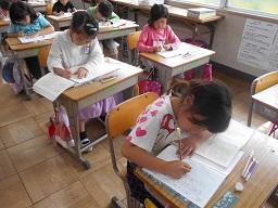 今日の4時間目に、2年生の国語の授業を見てきました。「くみたてを考えながら、しらせるぶんしょうを書こう」というねらいで、各自いろいろな知らせる文章を書いていました。みんな真剣に集中して書いている姿が、とても素晴らしいと感じました。