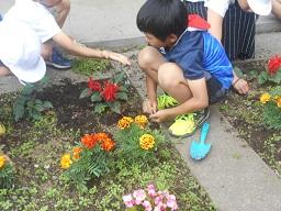 今日の昼の活動は、グリーンタイムで各班の花壇の草取りをしました。どの班も、とてもきれいになりました。