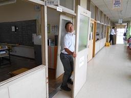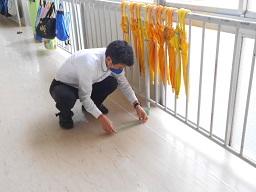 臨時休業中ですが、昨日の午後は教職員で3密を防ぐために、教室の廊下側の窓に加えて、出入り口のドアを外すことと、水道前に子どもたちが間隔を開けて並ぶための目安になるテープ貼りをしました。来週からは、登校日が始まります。できるだけ3密を防いで子どもたちを迎えたいと思います。
