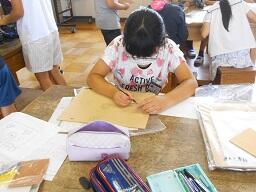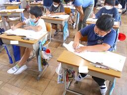 今日の5時間目に、5年生の図工の授業を見てきました。「糸のこスイスイ」という単元で、これから作るミニホワイトボードの作成図を描いていました。みんなとても楽しそうに、しかもけじめがある雰囲気で授業が進められていました。どんな作品が出来上がるのかとても楽しみです。