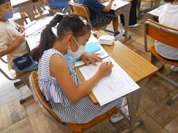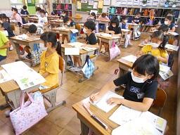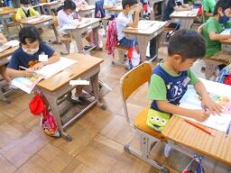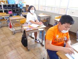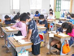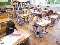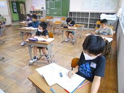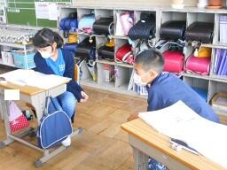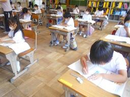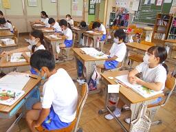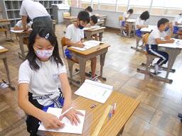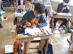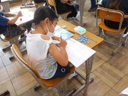 2時間目授業(1年生:算数、6年生:書写)