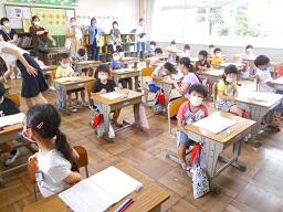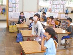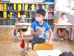 2時間目授業(1年生:算数、2年生:体育)