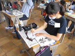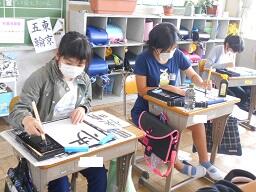 今日の2時間目に、6年生の書写の授業も見てきました。「快晴」の文字の練習をスタートしたところでしたが、みんな真剣に練習に取り組んでいました。やっぱり習字は難しいなと感じました。