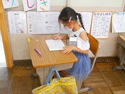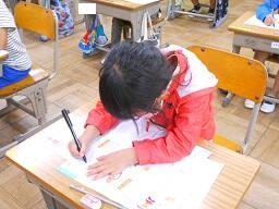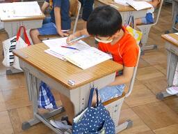 今日の4時間目の終わり、1年生が連絡帳を書いているのを見て来ました。以前、1年生が初めて連絡帳を書いたときのことはお知らせしましたが、その時と比べみんなとても上手に書けるようになっていました。