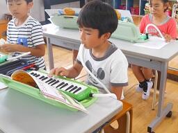 今日の6時間目に、3年生の音楽の授業を見てきました。「キラキラ おひさま」を指づかいに気をつけて演奏しようということで、全員で演奏した後に一人一人テストをしていました。みんな上手に演奏していました。