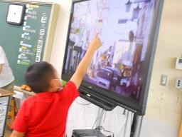 今日の2時間目に、1年生の算数の授業を見てきました。1けた-1けたのひき算をやっていました。電子黒板に問題が出て、それを見て子どもたちが答えていましたが、電子黒板はとても便利だと感じました。