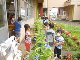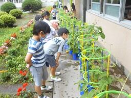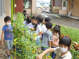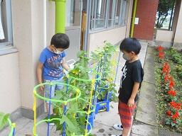金曜日の1、2年生の下校の時、2年生の女子が、「校長先生、1個あげます。」と言って生活科で大切に育てたミニトマトを1個差し出してきました。お母さんに言われたようですが、初めて収穫した4個のうち1個をくれました。この女の子の気持ちがうれしいですね。この2年生女子と声をかけたお母さんにいいとこめがね21決定です。その後、職員室で少し自慢をしました。