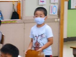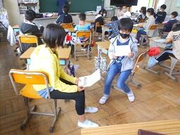 今日の4~6年生の下校の時、雨が降って傘をさし上着を手に持ってたいへんそうな4年生女子がいました。それを見た5年生女子が、何とか上着をランドセルに入れてあげようとしました。それを見ていた別の5年生女子も手伝い始めました。なんて優しい行動でしょう。するとそれを見ていた4年生女子の6年生の兄が、自分の上着といっしょに持って帰ると言って上着を受けとりました。みんなすごく優しいです。いいとこめがね22、5年生女子2名、そして6年生の兄に決定です。
