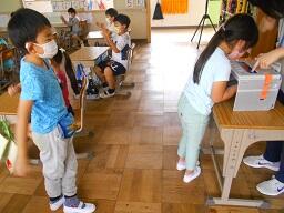 4 昇降口で手の消毒をお願いします。(消毒のためのスプレーは用意してあります。)
