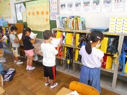 今日の1時間目に、1年生の算数の授業を見てきました。どちらが多いかという、かさの勉強を色水とペットボトルを使って行っていました。グループでどちらのペットボトルの方が多く水が入るかを考え、それを確かめる方法を発表していました。なかなか難しい勉強だと思いました。