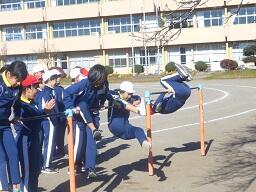 今日の2時間目に、1年生の体育の授業を見てきました。ながなわ跳びの練習をしていましたが、経験のあまりな子にとっては、かなり難しいようでしたが、練習するうちにだんだんできるようになってきて、すごいなと感じました。