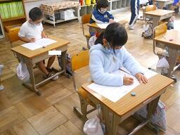 今日の1時間目に、2年生の生活科の授業を見てきました。土曜日に実施した「秋まつり」のふりかえりカードを書いていましたが、みんな満足いく活動ができたようです。