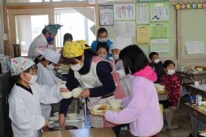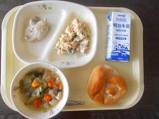 今日の給食は、地産地消ウィーク、米粉パン、牛乳、鶏肉のハーブ焼き、さつま芋のサラダ、ポトフです。高根沢町で生産された物は、にんじん、たまねぎ、キャベツ、だいこん、さつまいもです。今日もたいへんおいしく頂きました。