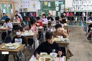 今日の給食で、本日の給食は大嘗祭記念給食だと言うことはお知らせしましたが、その給食に下野新聞社の取材が入り、4年生の給食の様子を見ていただきました。みんなとてもおいしそうに食べていました。担任の「無言で食べるけど、おいしいときは笑顔などの表情で表現するんだよ。」という声かけが最高でした。教育長さんもいらしゃっていましたが、子どもたちそして担任のことをたいへんほめて帰られました。できるだ早く掲載してくれるという話でしたが掲載予定はまだ未定だそうです。