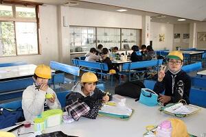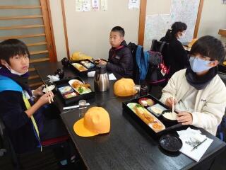 2日目の昼食です。笹かまぼこ焼き体験をした後に、昼食を食べました。みんな笹かまぼこを上手に焼き上げていました。