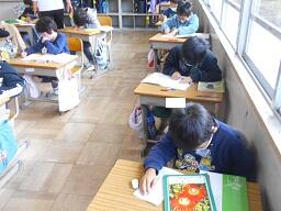 今日の1時間目に、2年生の生活科の授業を見てきました。土曜日に実施した「秋まつり」のふりかえりカードを書いていましたが、みんな満足いく活動ができたようです。