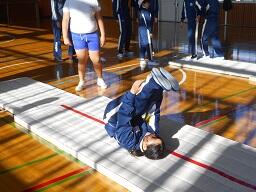 今日の1時間目に、5年生の体育の授業を見てきました。マット運動で。伸膝後転の練習をしていました。工夫された場で練習をしていましたが、なかなか難しいようでした。