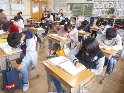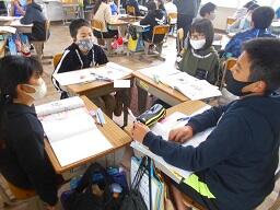 今日の2時間目に、少人数で実施している5年生の算数の授業を見てきました。得点の平均を求めていました。0点をどうするのかを考える中で、違った意見が出され、なかなか面白い授業でした。