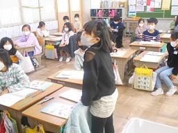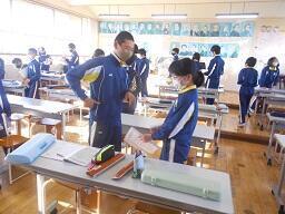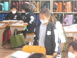 昨日の1時間目の休み時間、3年生の女子2名がランドセルと荷物を持って職員室前に来たので話を聞くと、早退する児童のランドセルと荷物をまとめて持って来たという話でした。優しくて気の利く行動だと思いました。いいとこめがね71、この3年生女子2名に決定です。