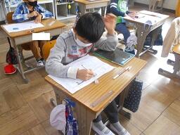 今日の1時間目に、2年生の国語の授業を見てきました。「おもちゃの作り方をせつめいしよう」の単元で、じゅんじょにそって文章を書いていました。みんなとても意欲的に取り組んで、何枚も書く用紙を取りに来ていました。