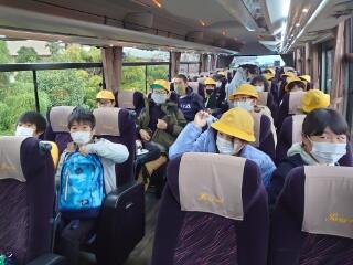 国見SAでトイレ休憩をとり、予定より5分早く学校へ向けて出発しました。みんな元気です。休憩前は、寝ている児童もいました。