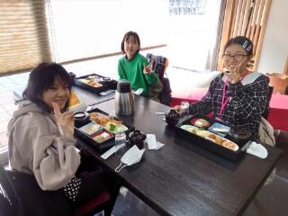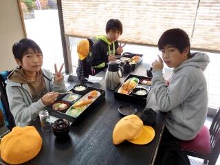 本丸会館で1日目の昼食を食べました。みんなとてもおいしそうです。