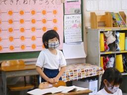 今日の1時間目に、1年生の国語の授業を見てきました。「ともだちにきいたことを、文しょうでつたえよう」というめあてで授業が展開されていました。みんなとても意欲的に授業に取り組んでいました。