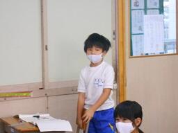 いつものように、朝各教室を回っていて1年生教室に入り、「今日も、チャレンジに来てね。」と声をかけると、一人の男の子が「よろしくお願いします。」と返事をしました。ちょっとうれしくなって、今日もチャレンジがんばってやるぞという気持ちになりました。いいとこめがね79、この礼儀正しい1年生男子に決定です。