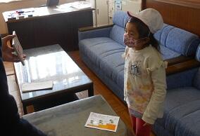 今まで続けてきた、1年生のたし算ひき算チャレンジですが、今日の中央タイムの時間で、全員合格しました。みんなよくがんばりました。最後に校長室で記念写真を撮って、すべて終了です。さらに確実な計算力が身につけられるように、冬休み中にも、時間がありましたらご家庭で計算の問題を出して答えさせるなどの取り組みをして頂けると助かります。