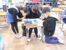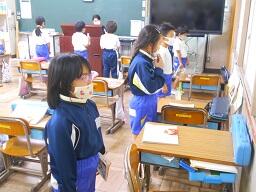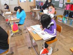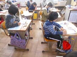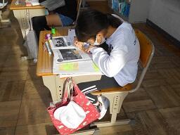 毎朝、教室を見て回っている時に、いつも落ち着いてランドセルを片付け1時間目の準備をして読書を始める4年生女子の2名が目に留まります。朝、いつ行っても落ち着いた生活態度に変わりありません。素晴らしいといつも感じています。いいことめがね91、この4年生女子2名に決定です。この2名は、朝だけでなく授業中も掃除の時間も実にしっかりした態度で取り組んでいます。(4年生は、しっかりあいさつができ、朝の準備もできていますが、この2名は特に素晴らしい。)