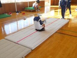 今日の2時間目に、2年生の体育の授業を見てきました。マットの後転を練習していました。みんなとても意欲的に取り組んでいたので、少しだけお手伝いをしてきました。とても楽しかったです。それと、授業が終わった後のマットの片付けの手際のよさにびっくりしました。(2年生とは思えません。)