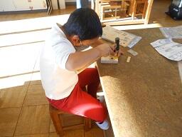 今日の2時間目に、3年生の図工の授業を見てきました。「くぎうち、トントン」という教材を使って、飾りを作っていました。3年生には、くぎを打つことはなかなか難しいと感じました。