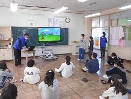 今日の3時間目に、4年生の外国語活動の授業を見てきました。野菜や果物のアルファベットを確認しようということで。電子黒板を使って授業が展開されていました。みんな自信満々で取り組んでいるように見えました。