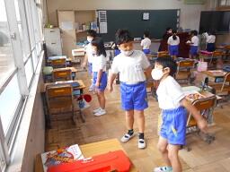 清掃強調週間最終日、管理棟3階廊下のゴミの掃き残しを取りながら進んでいると、6年教室で机といすをほぼ2人で運んでいる6年生と1年生の女子が見えました。少しの間手を止め見ていましたが、本当によく働く姿が見えました。その後、6年教室へ行き誰かを確認し、ほめてきました。いいとこめがね96、この6年生と1年生の女子2名に決定です。
