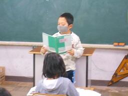 昨日の5時間目、3、4年生に続き、1年生でも道徳の授業をさせてもらいました。この授業がなかなか上手く流れませんでしたが、そんな中、何とか校長の求めていることを発言しようとみんながんばっていました。その中でも男子2名が特にがんばっているのが目に付きました。うれしい限りです。いいとこめがね94、この1年生男子2名に決定です。(年が明けたら、2年生でまた挑戦しようと思っています。)