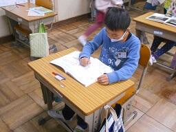 今日の2時間目に、1年生の国語の授業を見てきました。昨日のつづきをノートに書いていました。家庭でも、日付を、1日(ついたち)、2日(ふつか)・・・と日常的に使って子どもたちに話しかけていただければと思いました。