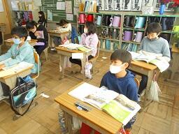 今日の1時間目に、4年生の国語の授業を見てきました。短歌と俳句を声に出して読むことで親しもうと言うことをねらいに授業が進められていました。難しい言葉もあり4年生には少し難しいと感じられましたが、こちらもみんな真剣に取り組んでいました。